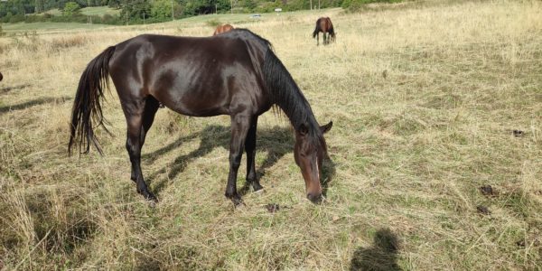 Nous avons la chance d’avoir des terrains variés, riches en expériences pour les jeunes chevaux (dénivelé variés, prairies, forêts, passages étroits, troncs à enjamber…). Nous constatons que cela les rends réfléchis, qu’ils ont une bonne connaissance de leur corps dans l’espace et un bon développement musculaire. Une fois montés cela leur donne plusieurs qualités recherchés par les cavaliers: pied sur en extérieur, équilibre en terrain varié, équilibre mental, facilite les débuts à l’obstacle, bonne base cardio-respiratoire, …